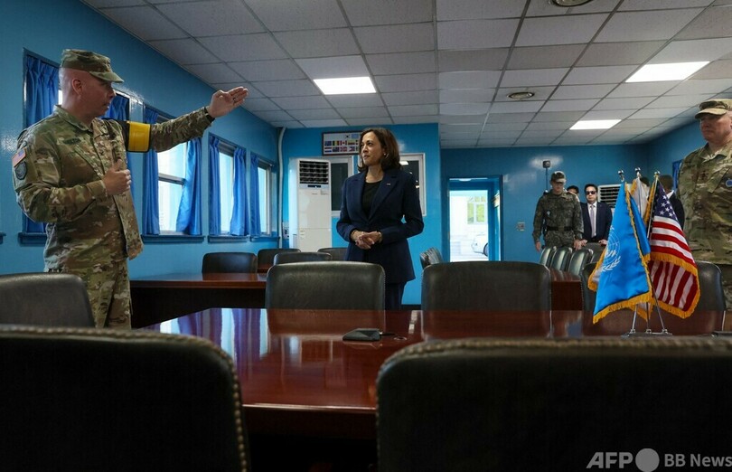 ハリス氏は、非武装地帯の丘にある監視所で米韓両軍兵士の説明を受けながら、双眼鏡で北朝鮮側を観察。「とても近い」との感想を漏らした。