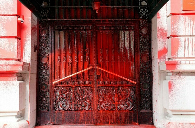 警察は午前1時30分過ぎ、マンハッタン(Manhattan)のアッパーイーストサイド(Upper East Side)にあるロシア領事館の正面に赤い塗料がかけられているとの通報を受けて現場に出動。偏見に基づく事件の可能性があるとして捜査を進めていると明らかにした。逮捕者は出ていない。