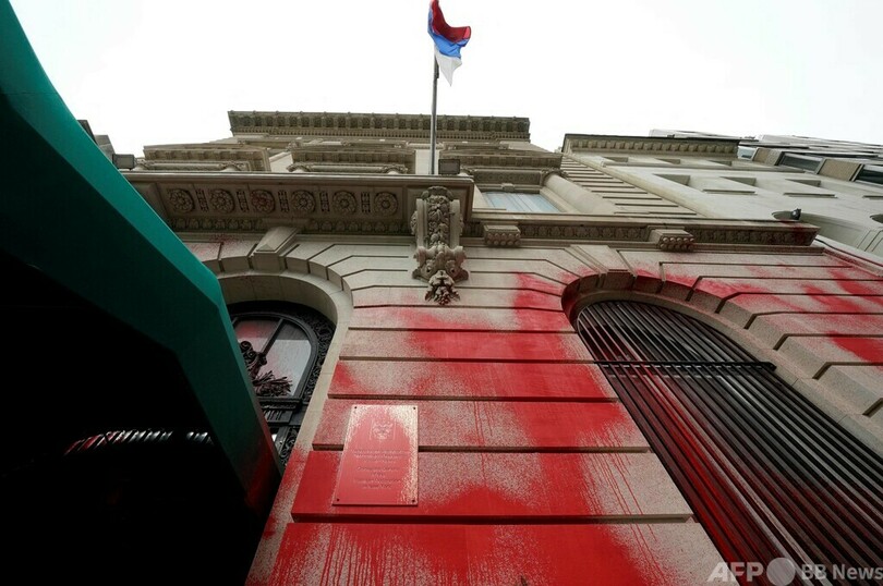 米NYのロシア領事館に赤い塗料 ウクライナ侵攻への抗議か
