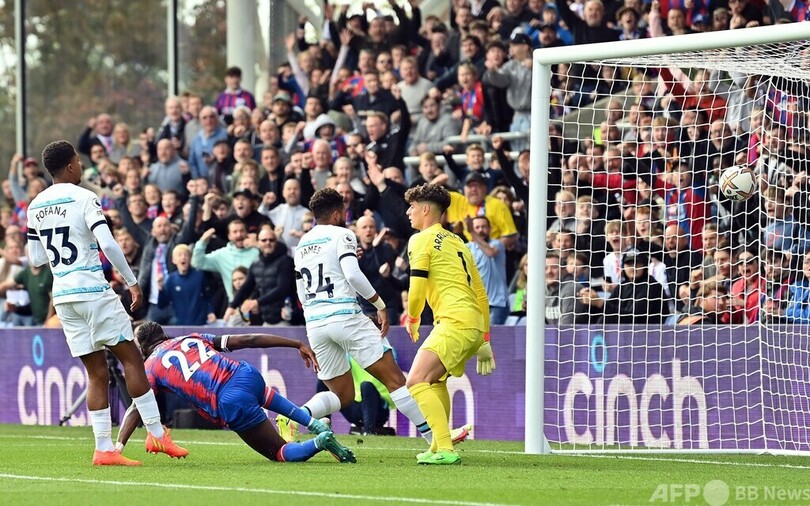 パレスに先制を許したチェルシーは38分、移籍市場の最終日にスペイン1部リーグのFCバルセロナ(FC Barcelona)から加入したピエール・エメリク・オーバメヤン(Pierre-Emerick Aubameyang)が初得点をマークして追いついた。
