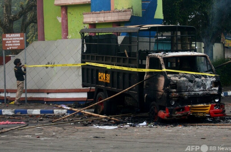 【10月2日 AFP】(更新、写真追加)インドネシア・東ジャワ(East Java)州マラン(Malang)にあるカンジュルハン・スタジアム(Kanjuruhan Stadium)で1日に行われたサッカーの試合後、ピッチに侵入したファンに対して警察が催涙ガスを放ったことで人々が殺到し、少なくとも129人が死亡したと地元警察が発表した。また、けが人の数は180人となっている。
