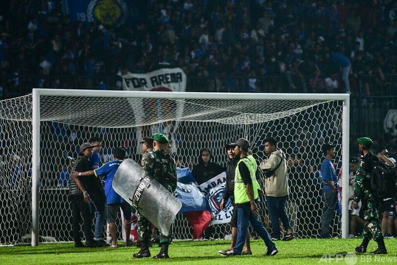 【10月2日 AFP】(更新、写真追加)インドネシア・東ジャワ(East Java)州マラン(Malang)にあるカンジュルハン・スタジアム(Kanjuruhan Stadium)で1日に行われたサッカーの試合後、ピッチに侵入したファンに対して警察が催涙ガスを放ったことで人々が殺到し、少なくとも129人が死亡したと地元警察が発表した。また、けが人の数は180人となっている。