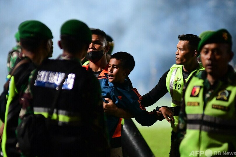 【10月2日 AFP】(更新、写真追加)インドネシア・東ジャワ(East Java)州マラン(Malang)にあるカンジュルハン・スタジアム(Kanjuruhan Stadium)で1日に行われたサッカーの試合後、ピッチに侵入したファンに対して警察が催涙ガスを放ったことで人々が殺到し、少なくとも129人が死亡したと地元警察が発表した。また、けが人の数は180人となっている。