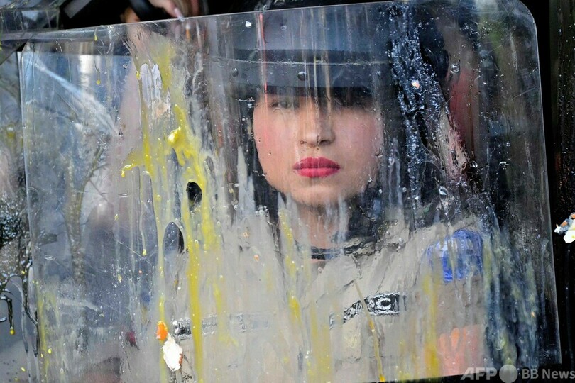 【今日の1枚】デモ隊への共感か? 濃く引かれた口紅 エクアドル