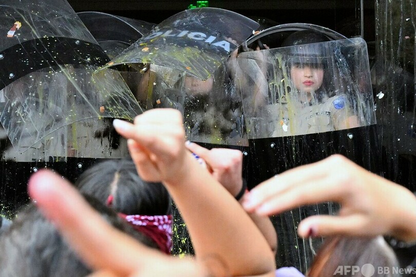 【今日の1枚】デモ隊への共感か? 濃く引かれた口紅 エクアドル