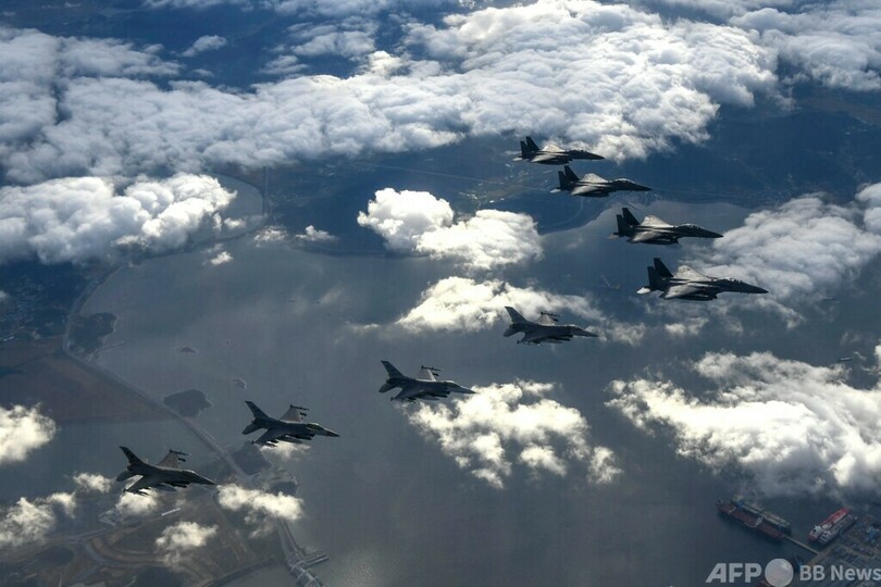 【10月4日 AFP】(写真追加)韓国軍は4日、北朝鮮が中距離弾道ミサイルを発射し日本の上空を通過した問題を受けて、米軍と共に精密爆撃訓練を実施したと発表した。
