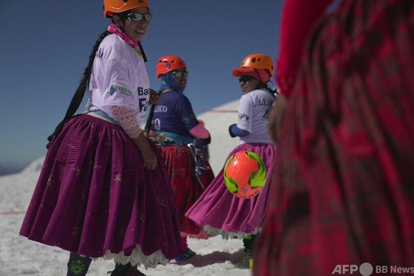 民族衣装で6000メートル峰へ ボリビア先住民女性