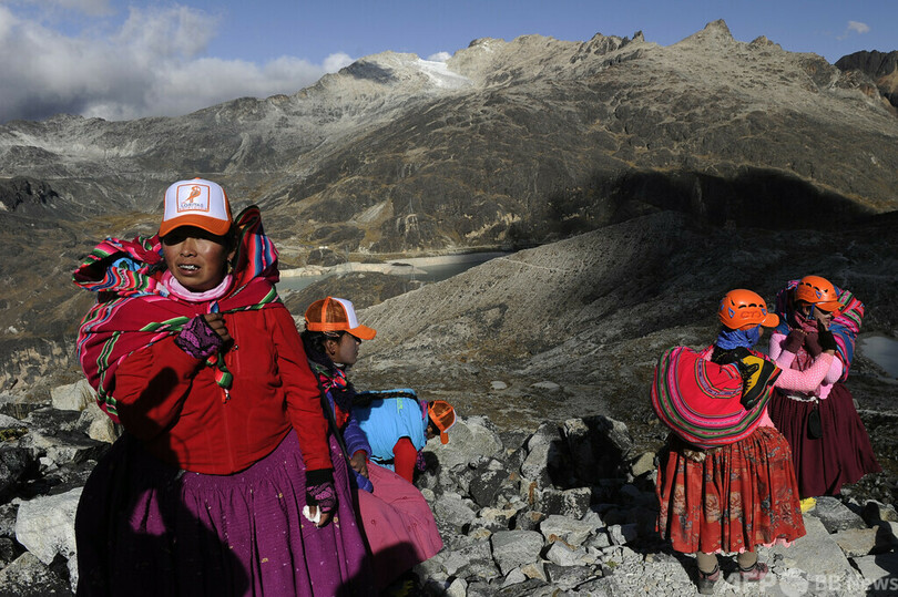 民族衣装で6000メートル峰へ ボリビア先住民女性