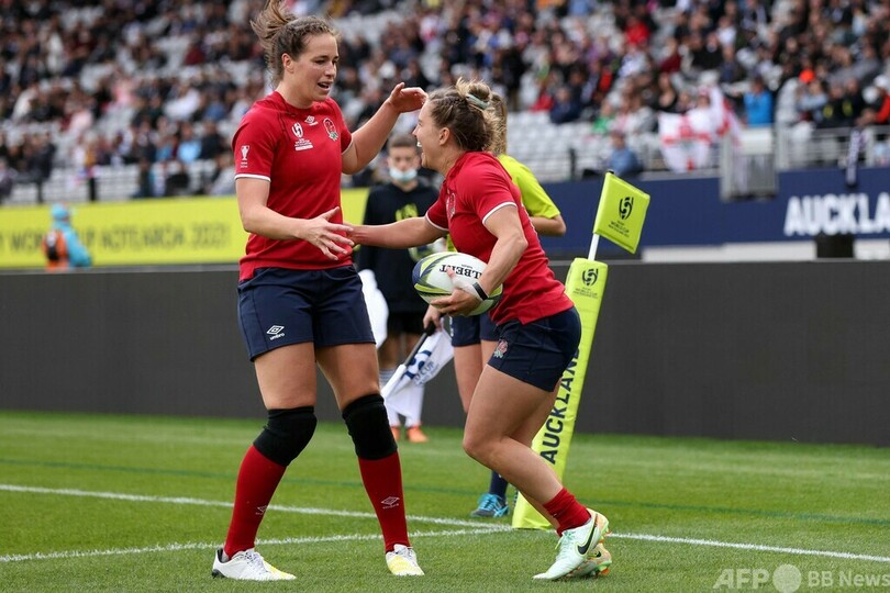 同組のイングランドは24-14のリードでハーフタイムを迎えたが、結局はクラウディア・マクドナルド(Claudia MacDonald)が4トライを挙げるなどし、女子W杯史上最多得点を挙げて無敗記録を26に伸ばした。(c)AFP