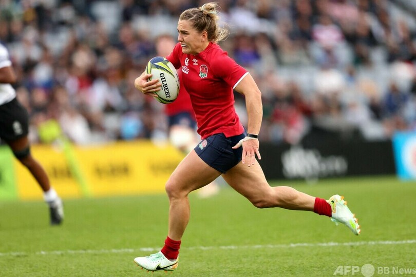 同組のイングランドは24-14のリードでハーフタイムを迎えたが、結局はクラウディア・マクドナルド(Claudia MacDonald)が4トライを挙げるなどし、女子W杯史上最多得点を挙げて無敗記録を26に伸ばした。(c)AFP