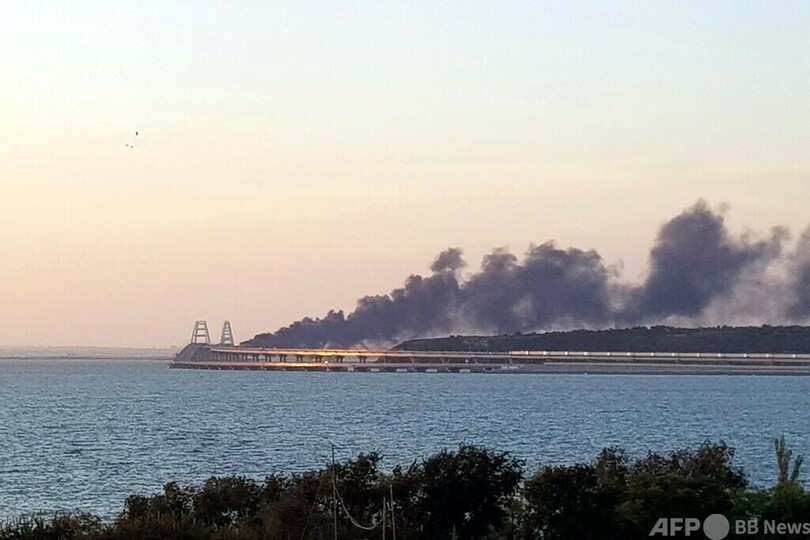 【10月8日 AFP】2014年にロシアがウクライナから併合したクリミア(Crimea)半島とロシア本土を結ぶ自動車・鉄道橋のクリミア橋(Crimean Bridge)で起きたトラックの爆発について、ロシア当局は8日、3人が死亡したと発表した。同国の侵攻を受けているウクライナによる攻撃だったかどうかには言及していない。
