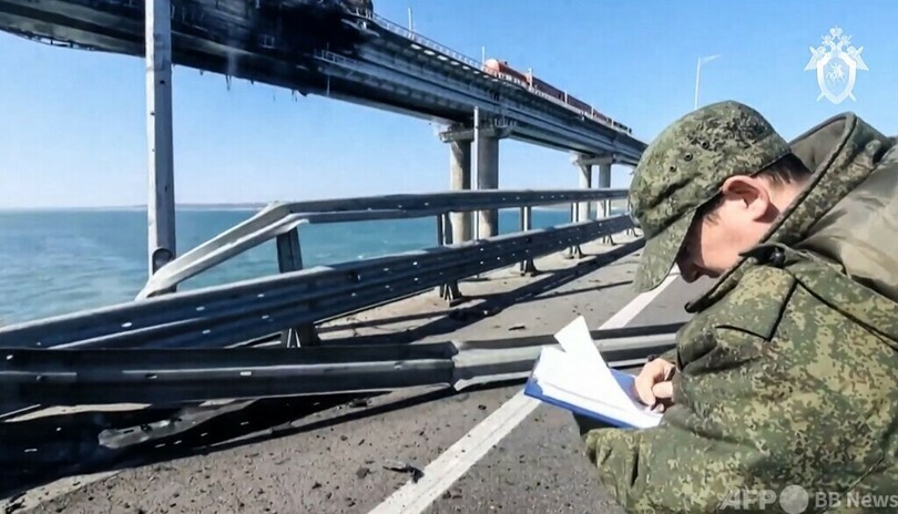 【10月8日 AFP】2014年にロシアがウクライナから併合したクリミア(Crimea)半島とロシア本土を結ぶ自動車・鉄道橋のクリミア橋(Crimean Bridge)で起きたトラックの爆発について、ロシア当局は8日、3人が死亡したと発表した。同国の侵攻を受けているウクライナによる攻撃だったかどうかには言及していない。