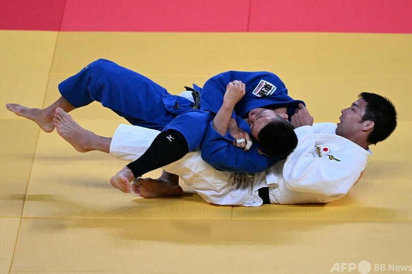 男子81キロ級では永瀬貴規(Takanori Nagase)が藤原崇太郎(Sotaro Fujiwara)との3位決定戦を制し、銅メダルを手にした。(c)AFP