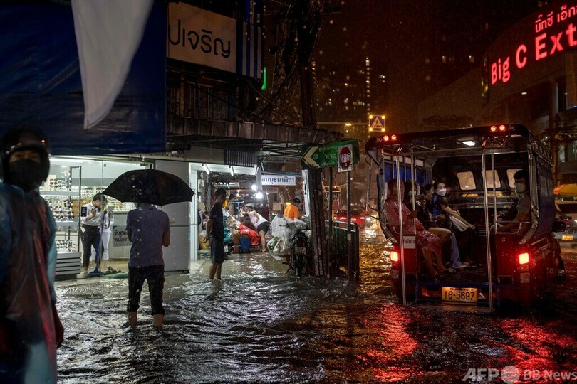 ニュース 社会 バンコクで豪雨による洪水 2022年10月10日 11:53 発信地:バンコク/タイ [ タイ アジア・オセアニア ] このニュースをシェア ‹ › ❮ 1/7 ❯ タイ・バンコクで、豪雨により洪水が発生した街の様子(2022年10月9日撮影)。(c)Jack TAYLOR / AFP 画像作成中 ! 【10月10日 AFP】タイ・バンコクで9日、豪雨による洪水が発生した。水に漬かりながらバイクを押す人や道を歩く人の姿が見られた。(c)AFP 社会 一覧へ> メディア・報道関係・法人の方向け 写真・動画 購入のお問合せ>