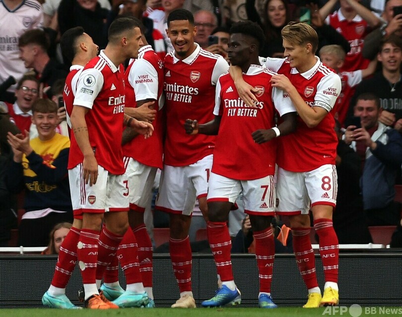 【10月10日 AFP】22-23イングランド・プレミアリーグは9日、第10節の試合が行われ、アーセナル(Arsenal)はブカヨ・サカ(Bukayo Saka)の2ゴールなどでリバプール(Liverpool FC)に3-2で勝利し、リーグ首位を守った。マンチェスター・ユナイテッド(Manchester United)はクリスティアーノ・ロナウド(Cristiano Ronaldo)のクラブ通算700ゴール目などでエバートン(Everton)を2-1で退けた。