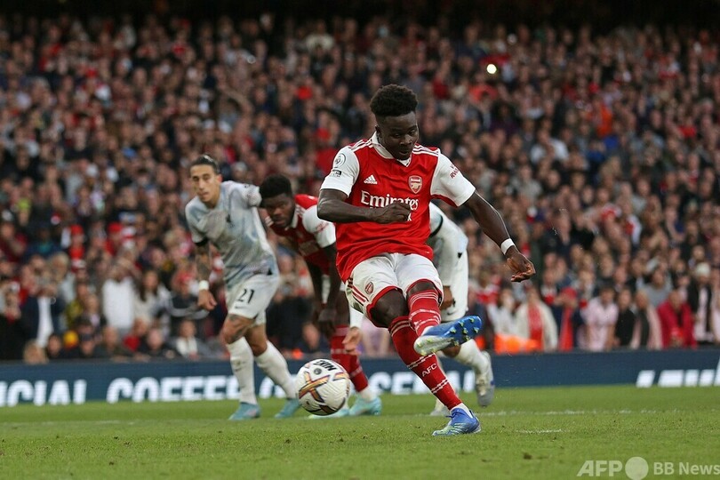 【10月10日 AFP】22-23イングランド・プレミアリーグは9日、第10節の試合が行われ、アーセナル(Arsenal)はブカヨ・サカ(Bukayo Saka)の2ゴールなどでリバプール(Liverpool FC)に3-2で勝利し、リーグ首位を守った。マンチェスター・ユナイテッド(Manchester United)はクリスティアーノ・ロナウド(Cristiano Ronaldo)のクラブ通算700ゴール目などでエバートン(Everton)を2-1で退けた。