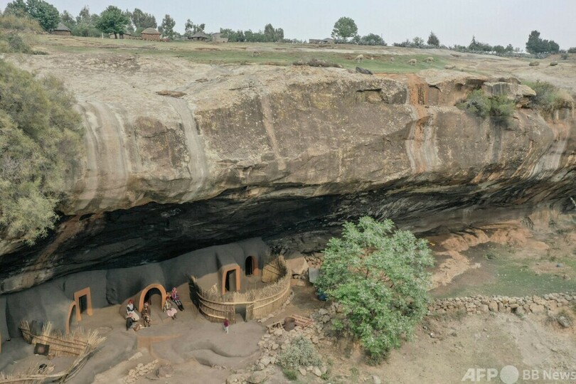 【10月20日 AFP】南アフリカに囲まれた内陸国レソトのベレア(Berea)地区で、コメ洞窟(Kome Caves)の中にある自宅前に座る住民。国家遺産に登録される泥でできたこの洞窟住居は、もともと18世紀の動乱「ムフェカネ(Mfecane Wars)」とカニバリズムの起こった時期にバシア(Basia)人などの隠れ家として使われた。(c)AFP