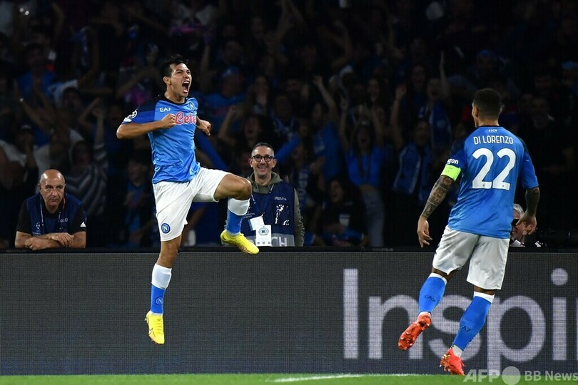 同組の他の試合では、ナポリ(SSC Napoli)がアヤックスに4-2で勝利。組首位の座をキープし、決勝トーナメント進出を決めた。(c)AFP/Kieran CANNING