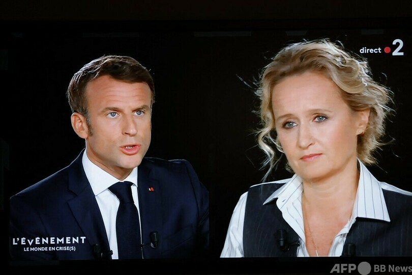 マクロン氏は国営テレビのフランス2(France 2)で「今はまず、ウラジーミル・プーチン氏がこの戦争をやめ、ウクライナの領土保全を尊重し、交渉の席に戻るべきだ」と強調。「世界規模の戦争」は回避したいと述べた。