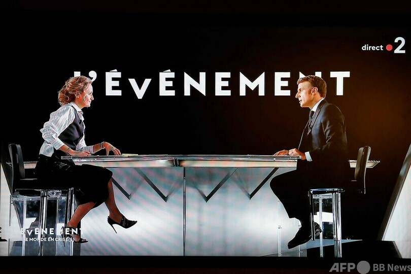 マクロン氏は国営テレビのフランス2(France 2)で「今はまず、ウラジーミル・プーチン氏がこの戦争をやめ、ウクライナの領土保全を尊重し、交渉の席に戻るべきだ」と強調。「世界規模の戦争」は回避したいと述べた。