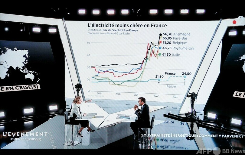 一方、ロシアが今週、ウクライナ各地に大規模攻撃を行ったことについて、マクロン氏は「ウクライナの抵抗を抑える」ことが狙いだとの見方を示し、フランスはウクライナに防空システムを供与すると表明した。(c)AFP
