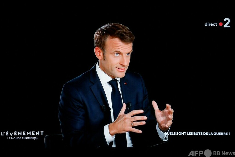 マクロン氏は国営テレビのフランス2(France 2)で「今はまず、ウラジーミル・プーチン氏がこの戦争をやめ、ウクライナの領土保全を尊重し、交渉の席に戻るべきだ」と強調。「世界規模の戦争」は回避したいと述べた。
