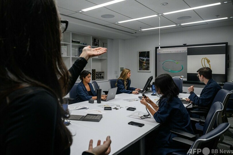 【10月30日 AFP】米ニューヨークにある宝飾品ブランド、ティファニー(Tiffany)の工房。デザイナーが制作した指輪やペンダント、ブレスレットの試作品を、すぐ近くの作業台で熟練の職人たちが手作業で磨いている。ロボットによるブレスレットの留め金の検査も行われている。(c)AFP/John Doe