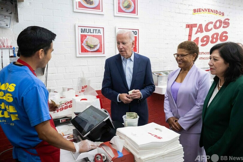 バイデン氏、タコス店で大盤振る舞い 請求金額の4倍支払い