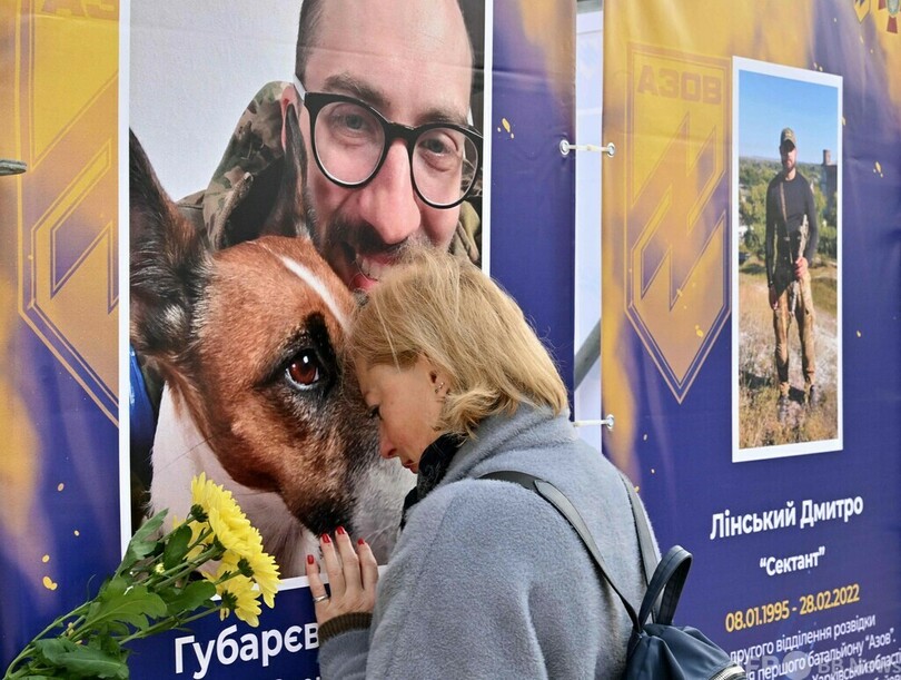 【10月15日 AFP】ウクライナは14日、ロシアによる侵攻後初めて「ウクライナ防衛者の日」を迎えた。首都キーウ中心部では野外展「アゾフ連隊─マリウポリの天使たち(Azov Regiment - Angels of Mariupol)」が開幕し、展示されている戦死者の遺影の前で涙を流す親族の姿も見られた。