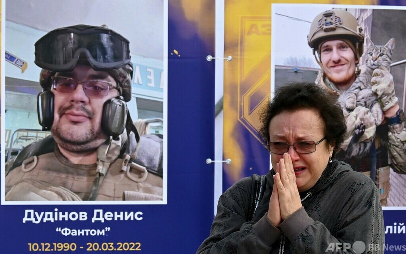 【10月15日 AFP】ウクライナは14日、ロシアによる侵攻後初めて「ウクライナ防衛者の日」を迎えた。首都キーウ中心部では野外展「アゾフ連隊─マリウポリの天使たち(Azov Regiment - Angels of Mariupol)」が開幕し、展示されている戦死者の遺影の前で涙を流す親族の姿も見られた。