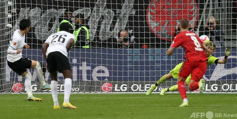 序盤から試合を支配したフランクフルトは、ハーフタイム直前にランダル・コロムアニ(Randal Kolo Muani)が相手GKルーカス・フラデツキー(Lukas Hradecky)にPKをセーブされたものの、フラデツキーがゴールラインから早く離れていたとして蹴り直しとなり、これを鎌田が決めて先制した。