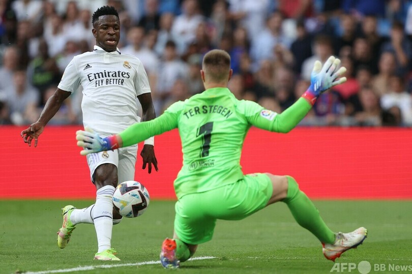 本拠地サンチャゴ・ベルナベウ(Santiago Bernabeu Stadium)にバルセロナを迎えたレアルは、ビニシウス・ジュニオール(Vinicius Junior)のシュートがGKマルクアンドレ・テル・シュテーゲン(Marc-Andre ter Stegen)にはじかれたところを、カリム・ベンゼマ(Karim Benzema)が押し込んで12分に先制。さらにはフェデリコ・バルベルデ(Federico Valverde)がペナルティーエリアの端からミドルシュートを突き刺し、前半のうちにリードを広げた。