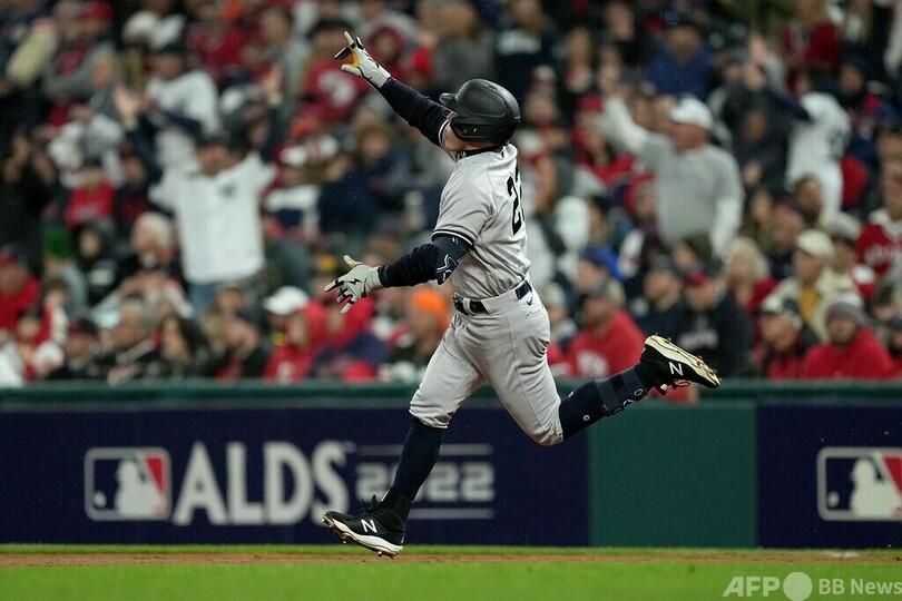 【10月17日 AFP】22MLBは16日、ア・リーグの地区シリーズ(5回戦制)が行われ、ニューヨーク・ヤンキース(New York Yankees)はハリソン・ベイダー(Harrison Bader)の2点本塁打などでクリーブランド・ガーディアンズ(Cleveland Guardians)に4-2で勝利。戦績を2勝2敗のタイに戻し、シリーズ突破へ望みをつないだ。