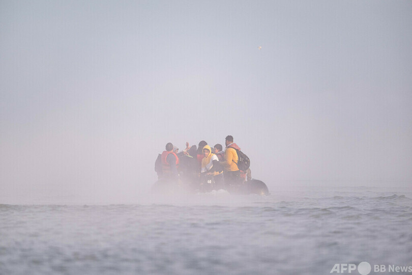 【10月27日 AFP】フランス北部ダンケルク(Dunkirk)に近いグラブリヌ(Gravelines)の浜で、イギリス海峡(English Channel)を渡ろうと、ゴムボートを肩に担いで運ぶ移民ら。イギリス海峡は、1日に400隻もの商業船が行き来する世界で最も混雑した航路の一つだが、今年に入ってからすでに3万3500人以上が危険を冒してイギリス海峡を渡った。(c)AFP