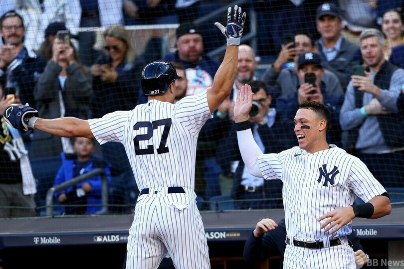 【10月19日 AFP】22MLBは18日、ア・リーグの地区シリーズ(5回戦制)が行われ、ニューヨーク・ヤンキース(New York Yankees)はジャンカルロ・スタントン(Giancarlo Stanton)とアーロン・ジャッジ(Aaron Judge)の本塁打などでクリーブランド・ガーディアンズ(Cleveland Guardians)に5-1で勝利し、3勝2敗でシリーズを突破した。