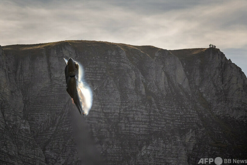 【10月24日 AFP】スイス・ベルナーオーバーラント(Berner Oberland)のアクサルプ(Axalp)上空で展示飛行を実施するスイス空軍のアクロバット飛行チーム「パトルイユ・スイス(Patrouille Suisse)」。欧州で最も高い標高2200メートルにある射撃演習場で開かれた恒例の航空ショーに参加した。