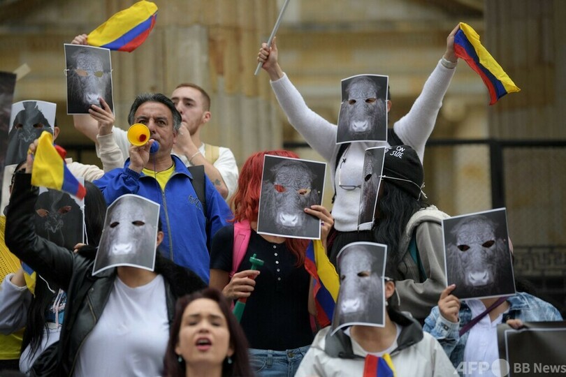 ニュース 社会 今日の1枚 【今日の1枚】闘わされている牛の気持ちを代弁 コロンビア 2022年11月1日 12:15 発信地:ボゴタ/コロンビア [ コロンビア 中南米 ] このニュースをシェア ‹ › ❮ 4/4 ❯ コロンビア・ボゴタのボリバル広場で、闘牛と闘鶏に反対するデモに参加した動物愛護活動家ら(2022年10月18日撮影)。(c)Raul ARBOLEDA / AFP 画像作成中 ! 【11月1日 AFP】コロンビア・ボゴタのボリバル広場(Bolivar Square)で、闘牛と闘鶏に反対するデモに参加した動物愛護活動家ら。(c)AFP 社会 一覧へ> メディア・報道関係・法人の方向け 写真・動画 購入のお問合せ>