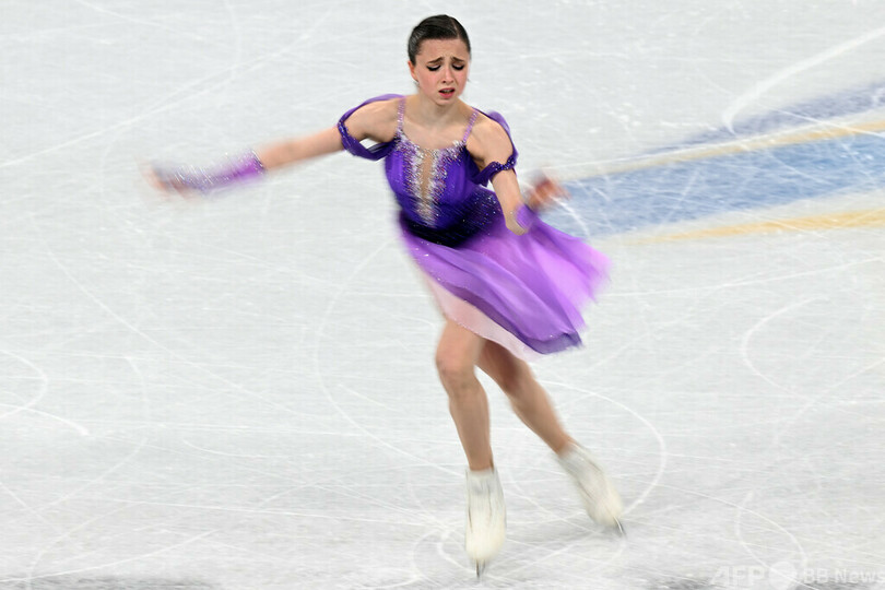 そうした中で個人戦に出場したワリエワは、転倒を繰り返して4位に終わった。また、国際オリンピック委員会(IOC)は、同選手の問題が解決されるまで団体戦のメダル授与は行わないことを決めた。(c)AFP