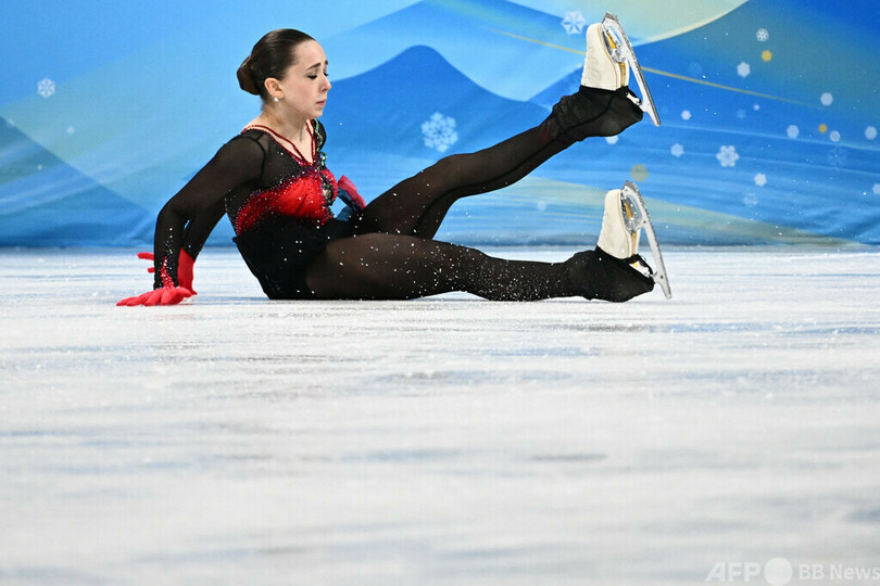 そうした中で個人戦に出場したワリエワは、転倒を繰り返して4位に終わった。また、国際オリンピック委員会(IOC)は、同選手の問題が解決されるまで団体戦のメダル授与は行わないことを決めた。(c)AFP