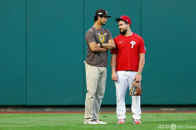 【10月22日 AFP】22MLBは21日、ナ・リーグ優勝決定シリーズ(7回戦制)第3戦が行われ、フィラデルフィア・フィリーズ(Philadelphia Phillies)はカイル・シュワバー(Kyle Schwarber)がまたしても一発を放つなどしてサンディエゴ・パドレス(San Diego Padres)を4-2で下し、2勝1敗とリードした。
