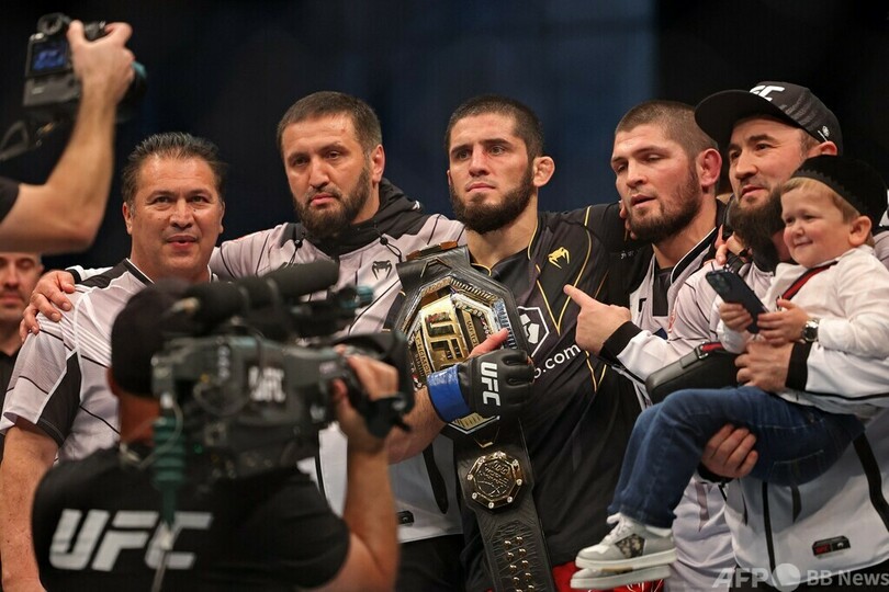 マカチェフはキャリアを通じて、UFC歴代最強との呼び声も高い同胞ハビブ・ヌルマゴメドフ(Khabib Nurmagomedov)氏とともにトレーニングを行ってきた。現在は一戦を退いたヌルマゴメドフ氏は、29戦無敗を誇った自身の現役時代を映したかのような内容に顔をほころばせ、試合後にはマカチェフからベルトを渡された。