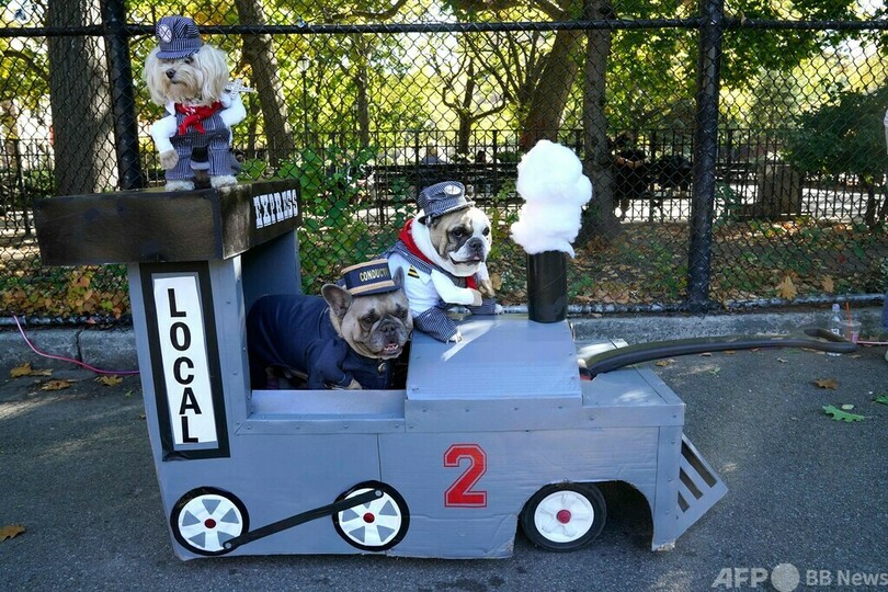 【10月23日 AFP】米ニューヨーク市で22日、毎年恒例の犬の仮装イベント「トンプキンススクエア・ハロウィーン・ドッグパレード(Tompkins Square Halloween Dog Parade)」が開催された。32回目となる今年も、思い思いの仮装で参加する飼い主と犬の姿が見られた。(c)AFP