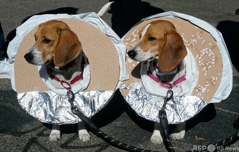【10月23日 AFP】米ニューヨーク市で22日、毎年恒例の犬の仮装イベント「トンプキンススクエア・ハロウィーン・ドッグパレード(Tompkins Square Halloween Dog Parade)」が開催された。32回目となる今年も、思い思いの仮装で参加する飼い主と犬の姿が見られた。(c)AFP