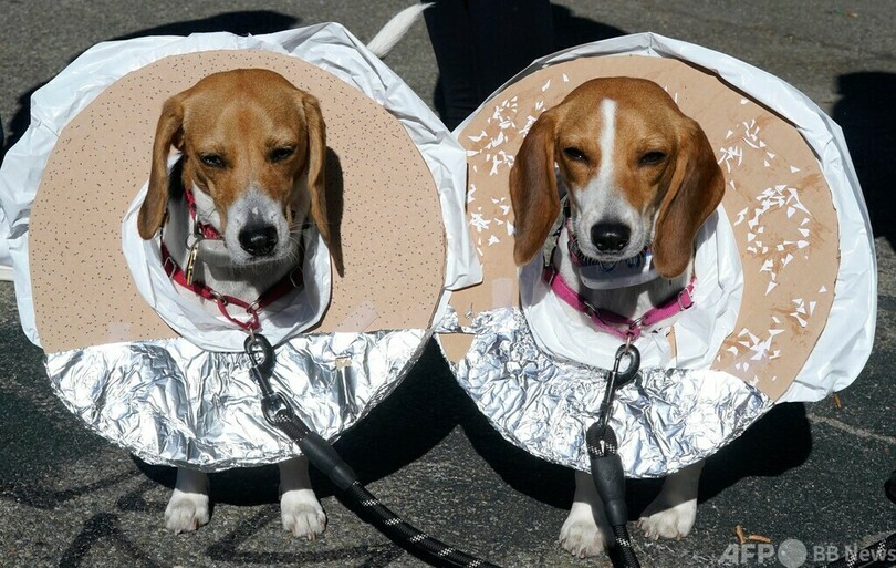 【10月23日 AFP】米ニューヨーク市で22日、毎年恒例の犬の仮装イベント「トンプキンススクエア・ハロウィーン・ドッグパレード(Tompkins Square Halloween Dog Parade)」が開催された。32回目となる今年も、思い思いの仮装で参加する飼い主と犬の姿が見られた。(c)AFP