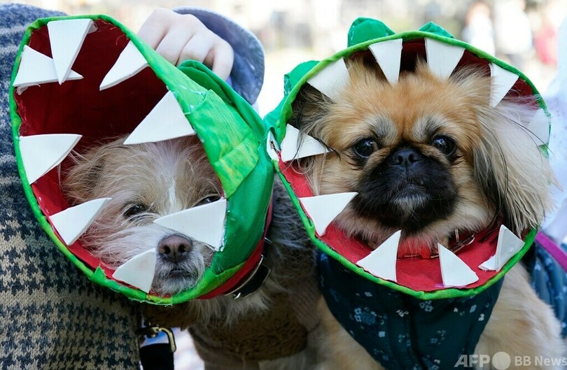 【10月23日 AFP】米ニューヨーク市で22日、毎年恒例の犬の仮装イベント「トンプキンススクエア・ハロウィーン・ドッグパレード(Tompkins Square Halloween Dog Parade)」が開催された。32回目となる今年も、思い思いの仮装で参加する飼い主と犬の姿が見られた。(c)AFP