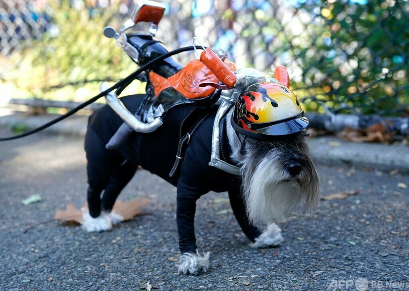【10月23日 AFP】米ニューヨーク市で22日、毎年恒例の犬の仮装イベント「トンプキンススクエア・ハロウィーン・ドッグパレード(Tompkins Square Halloween Dog Parade)」が開催された。32回目となる今年も、思い思いの仮装で参加する飼い主と犬の姿が見られた。(c)AFP