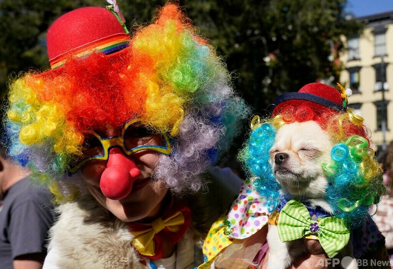 【10月23日 AFP】米ニューヨーク市で22日、毎年恒例の犬の仮装イベント「トンプキンススクエア・ハロウィーン・ドッグパレード(Tompkins Square Halloween Dog Parade)」が開催された。32回目となる今年も、思い思いの仮装で参加する飼い主と犬の姿が見られた。(c)AFP