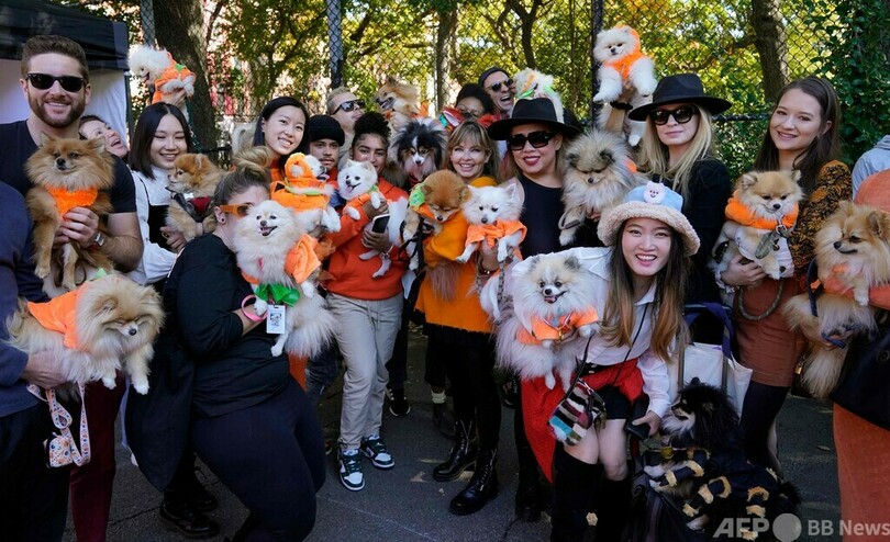 【10月23日 AFP】米ニューヨーク市で22日、毎年恒例の犬の仮装イベント「トンプキンススクエア・ハロウィーン・ドッグパレード(Tompkins Square Halloween Dog Parade)」が開催された。32回目となる今年も、思い思いの仮装で参加する飼い主と犬の姿が見られた。(c)AFP
