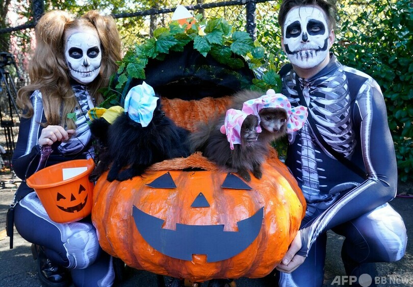【10月23日 AFP】米ニューヨーク市で22日、毎年恒例の犬の仮装イベント「トンプキンススクエア・ハロウィーン・ドッグパレード(Tompkins Square Halloween Dog Parade)」が開催された。32回目となる今年も、思い思いの仮装で参加する飼い主と犬の姿が見られた。(c)AFP