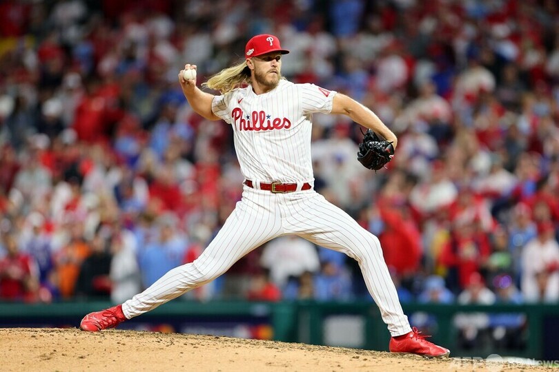 するとその裏にホスキンスの2点本塁打とブライス・ハーパー(Bryce Harper)の適時二塁打で1点差としたフィリーズは、4回に二塁打で出塁したニック・カステラノス(Nick Castellanos)がブライアン・ストット(Bryson Stott)の安打で生還して追いついた。